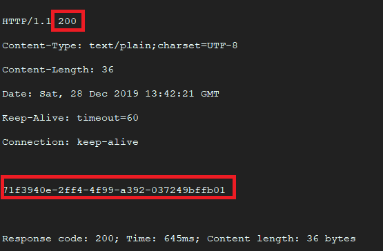 4. 정상 실행결과 및 반환된 계정 식별자 값을 확인합니다.