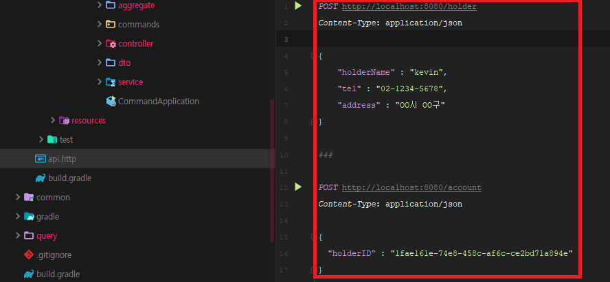 Command Application API 테스트를 수행하기 위한 코드를 작성합니다. API 테스트를 위해 Postman을 비롯하여 여러 툴이 있지만, IntelliJ의 http 기능을 사용해서 테스트를 진행하도록 하겠습니다.
