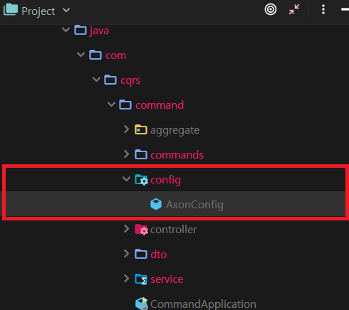 1. Command 모듈에 config 패키지 생성 후 AxonConfig 클래스를 생성합니다.