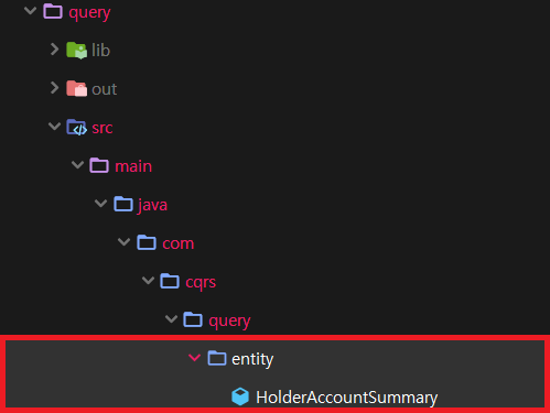 1. Query 모듈내 entity 패키지를 생성후 Entity 클래스를 생성합니다.