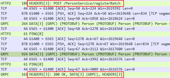 그렇다면 위 5개의 데이터 전송 흐름에서 gRPC 패킷은 어떤 특징을 지니고 있을까요?