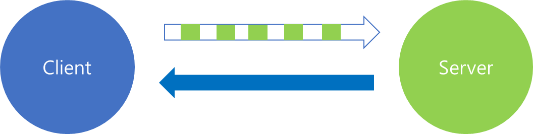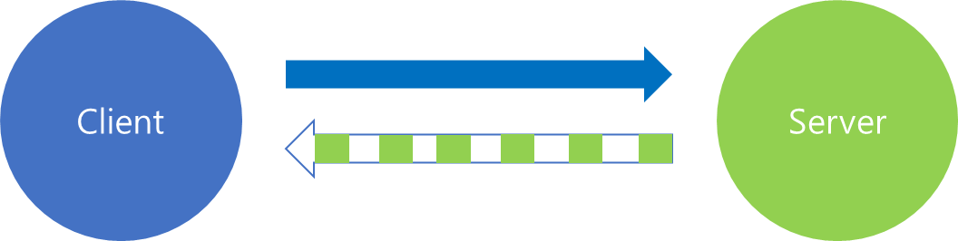 이는 가장 단순한 서비스 형태로써 클라이언트가 단일 요청 메시지를 보내고 서버는 이에 단일 응답을 내려보내주는 방식입니다. 일반적으로 사용하는 REST API를 통해 주고 받는 Stateless 방식과 동일하다고 볼 수 있으며, 개념적으로 이해하기 쉽습니다.