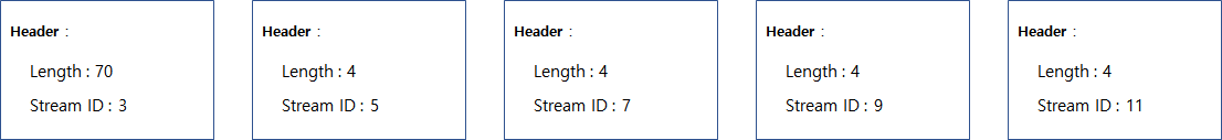 Header를 살펴보면, Header의 길이 그리고 Header의 종류 flag가 보입니다. 그리고 Stream ID가 표시된 것을 볼 수 있는데, 이는 HTTP Stream 내에서 사용되는 Stream 메시지 별 Unique ID 입니다. Client에서 보내는 메시지는 Stream ID가 홀수개로 증가합니다.