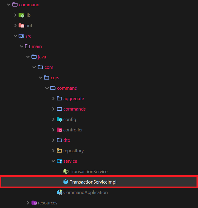 5. Command 모듈 service 패키지에 위치한 TransactionServiceImpl 파일을 엽니다.