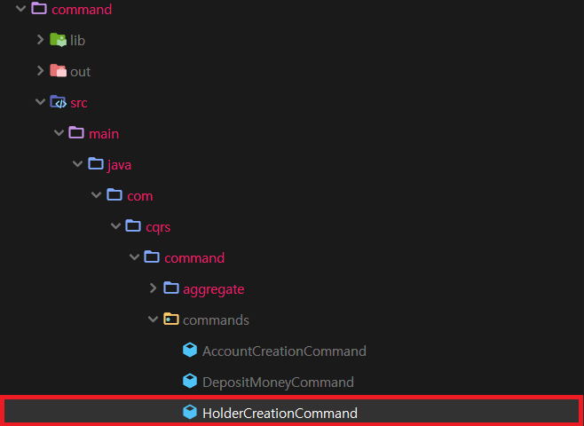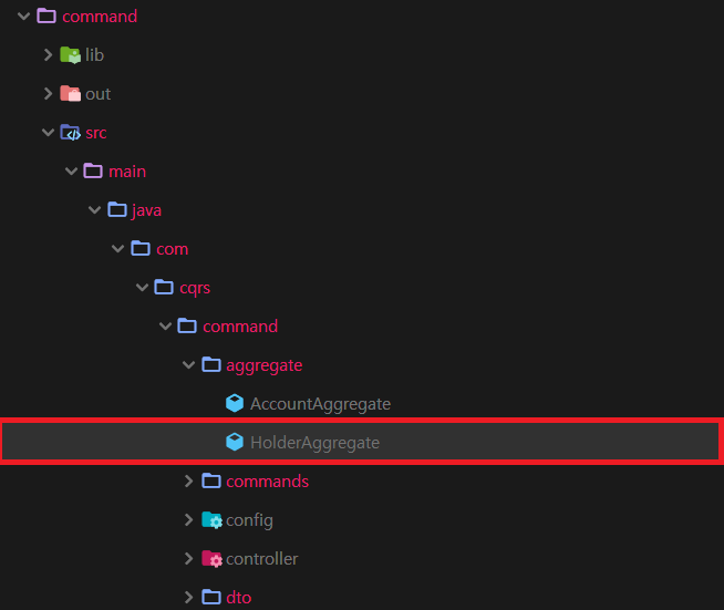 11. Command 모듈 aggregate 패키지내에 위치한 HolderAggregate 파일을 엽니다.