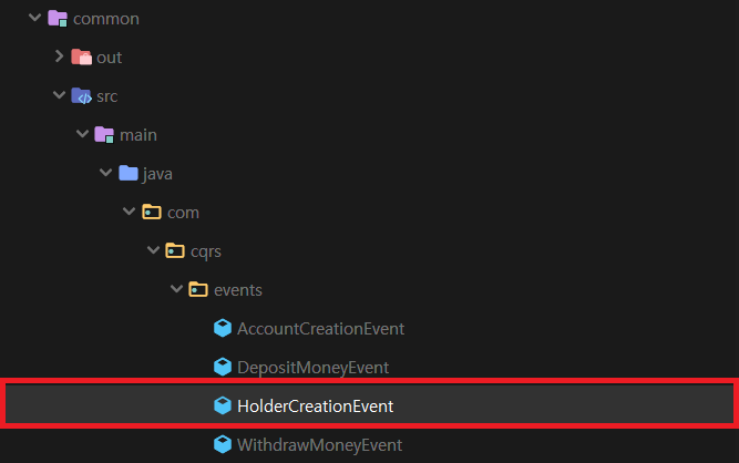 9. Common 모듈 events 패키지 내 HolderCreationEvent 파일을 엽니다.