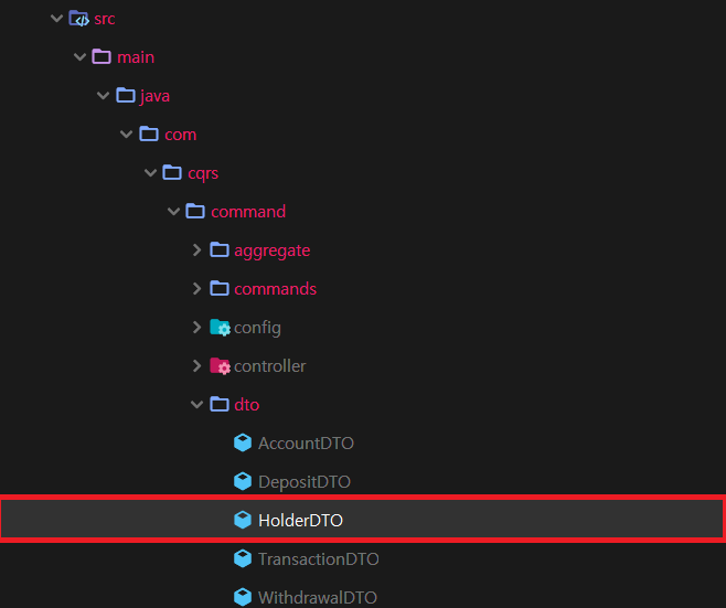 1. Command 수정을 위해서 API 변경이 필요합니다. Command 모듈내 dto 패키지에 위치한 HolderDTO 파일을 엽니다.