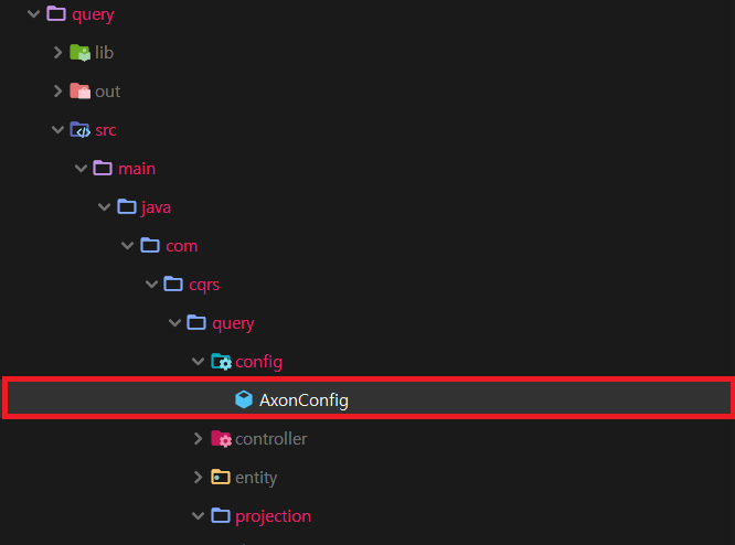 15. Query 모듈내 config 패키지에 존재하는 AxonConfig 파일을 엽니다.