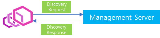이러한 상황에서 처음 Management Server에 envoy가 연결되면, 위와 같이 Discovery Request를 Management Server에 전달합니다. 그러면 Management Server에서는 envoy가 요청하는 Config에 대해서 전체 목록을 전달하게되고, envoy는 해당 설정을 전달받아 Config 업데이트를 수행합니다.
