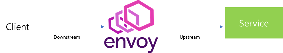 Envoy는 Proxy 프로그램으로 사용자와 Service 중간에서 Proxy 역할을 수행합니다. 이때 Client로부터 전달받는 트래픽은 Downstream, 전달받은 요청을 Service로 전달하는 트래픽을 Upstream이라고 부릅니다. 즉 Envoy를 기준으로 상위 서비스 전달은 Upstream Envoy로 흘러 들어오는 스트림은 Downstream입니다.