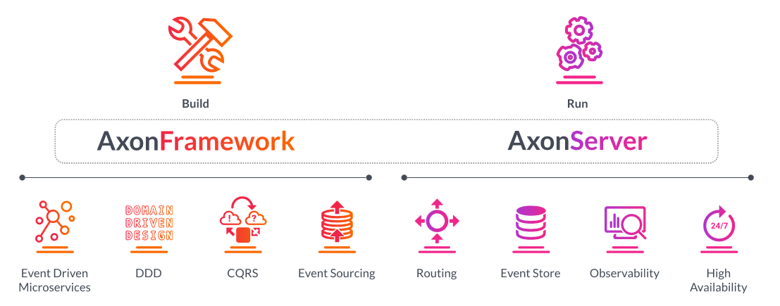 해당 제품은 오픈소스로써 네덜란드에서 설립된 AxonIQ 회사에서 개발을 주도하고 있습니다. 주력 제품으로는 DDD, EventSourcing, CQRS를 구현할 수 있는 AxonFramework와 EventStore, 마이크로 서비스간 메시지 Routing을 담당하는 Axon Server 입니다.