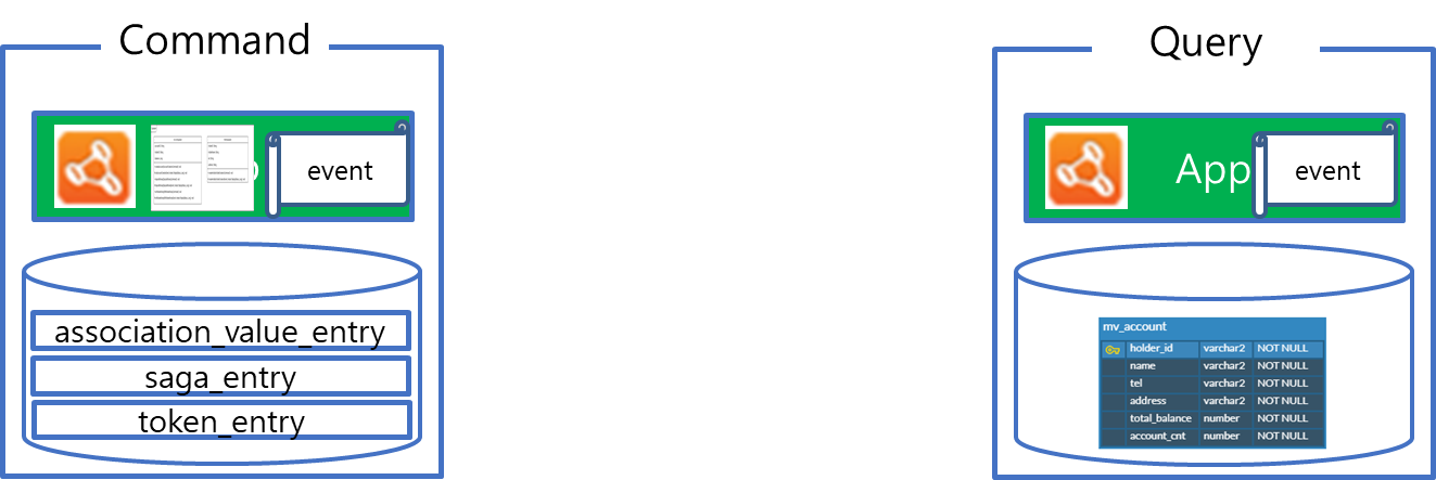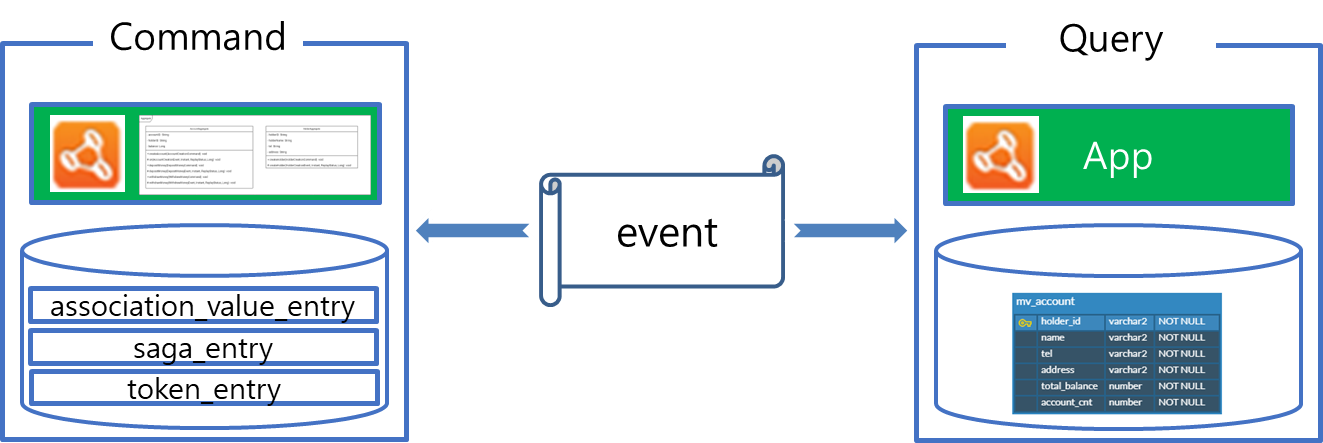 즉 Event 클래스만 모은 공통 모듈을 작성하고, Command, Query에서 이를 참조하도록 구성합니다. 이렇게 별도 모듈로 분리함으로서 변경 사항 발생시 공통 모듈에만 변경을 가하면 양쪽 App에 적용되므로 소스 관리가 용이해집니다.