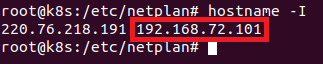 25. IP 설정이 정상적으로 되었는지 확인합니다. (hostname -I)