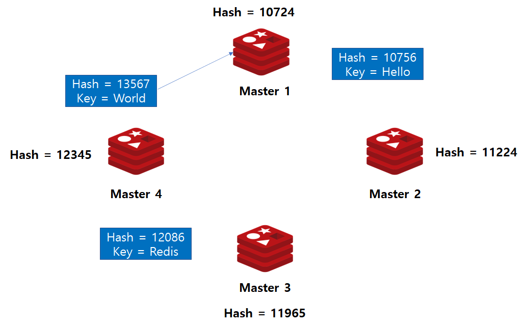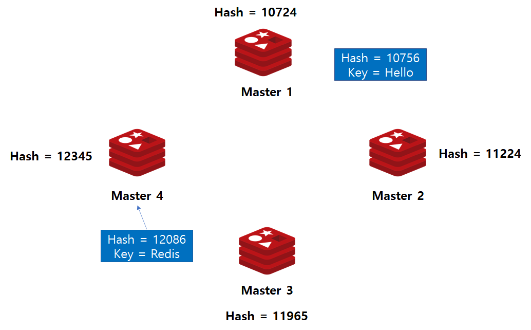 위 그림과 같이 Redis Master 노드에 대하여 해시함수를 적용합니다.