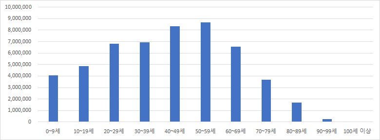 만약 대한민국 전체 국민의 개인정보를 관리하는 시스템 테이블에서 사람들의 나이 10살 범위 기준으로 Range 파티셔닝 했다고 가정해보겠습니다.