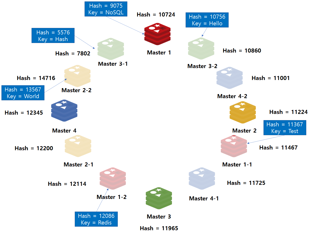 위 그림과 같이 Redis Master 노드에 대하여 해시함수를 적용합니다.