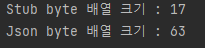 결과를 측정해보면 값이 모두 들어있을 때보다 일부 필드에 값이 입력되지 않았을 경우 Stub 객체의 Byte 배열 크기와 JSON의 결과값이 더욱 차이가 나며, 이는 전체 값을 입력했을 때 보다 압축률이 더 좋음을 의미합니다.