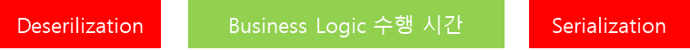 요청에 대해서 응답을 처리하는 전체 flow를 아주 간략하게 표현한다면, 위와 같이 표현할 수 있을 것입니다. 위 과정에서 오래걸리는 영역은 당연히 Business Logic 처리를 위한 수행시간일 것입니다. 따라서 Business Logic 수행 시간이 오래 걸릴 수록 격차는 현격히 줄어들 것입니다.