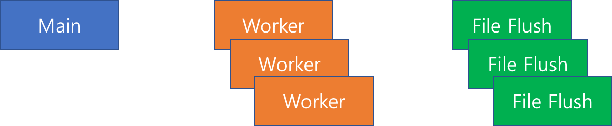 Envoy 내부에는 전체를 관장하는 Main 쓰레드와 Network 요청과 라우팅을 처리하기 위한 여러 Worker 쓰레드가 존재합니다. 또한 그 외에도 파일 동기화를 위해 별도 File Flush 쓰레드가 별도로 존재합니다.