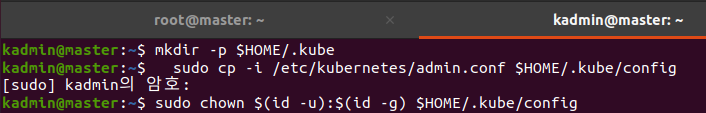 (※ root가 아닌 admin 계정으로 kubectl을 수행할 것이므로 계정이 올바른지 확인합니다.)