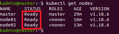 3. node 상태를 살펴보면 STATUS가 Ready로 변경된 것을 확인할 수 있습니다. (kubectl get nodes)
